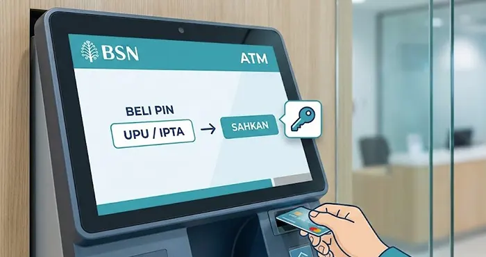 Proses untuk beli PIN UPU di mesin ATM BSN sebenarnya sangat mudah jika anda mengikuti langkah-langkah yang betul.